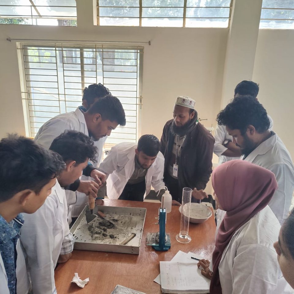 The Engineering Materials Lab in the Department of Civil Engineering at BAUST offers students valuable hands-on experience in testing various materials, including brick, stone aggregates, sand, cement, concrete, and soil. With a wide array of equipment available, the lab enables students to conduct undergraduate thesis work and pursue research projects under the guidance of experienced faculty within the department.